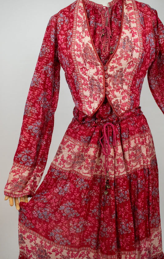 Vintage Indian Hand Block Printed Cotton Quilted Vest Blouse Skirt Co-ord