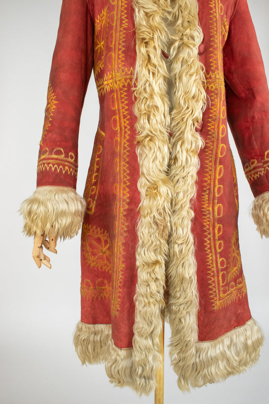 Rare Vintage Red 1960's Silk Embroidered Afghan Coat