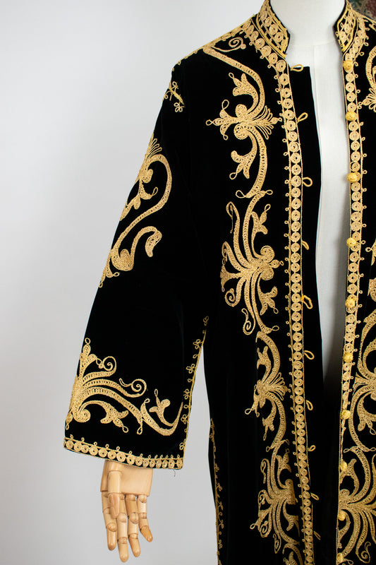 Vintage Eastern 1960s Velvet Embroidered Hippie Boho Jacket Coat Kaftan Robe.