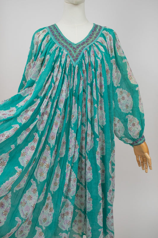 Vintage Her Excellency Indian Hand Block Printed Cotton Gauze Dress
