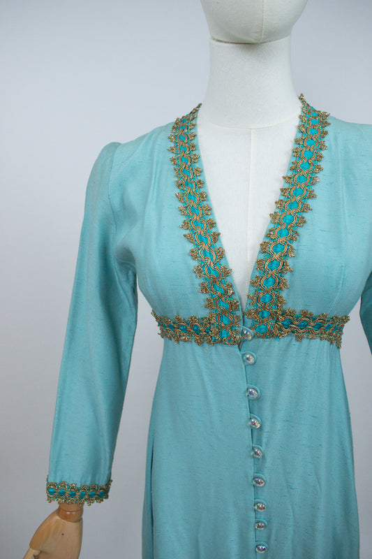 Vintage 1960s Turquoise Ethnic Style Jacket Dress