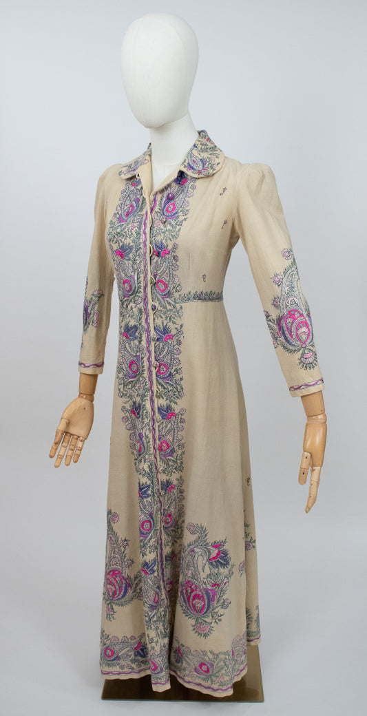Vintage 1970's Boho Woollen Tapestry Dress by Jo Ellen Couture by Allen Davidson.