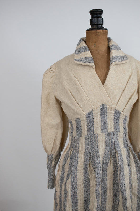 Vintage 1950s Cream & Blue Striped Wool Dress