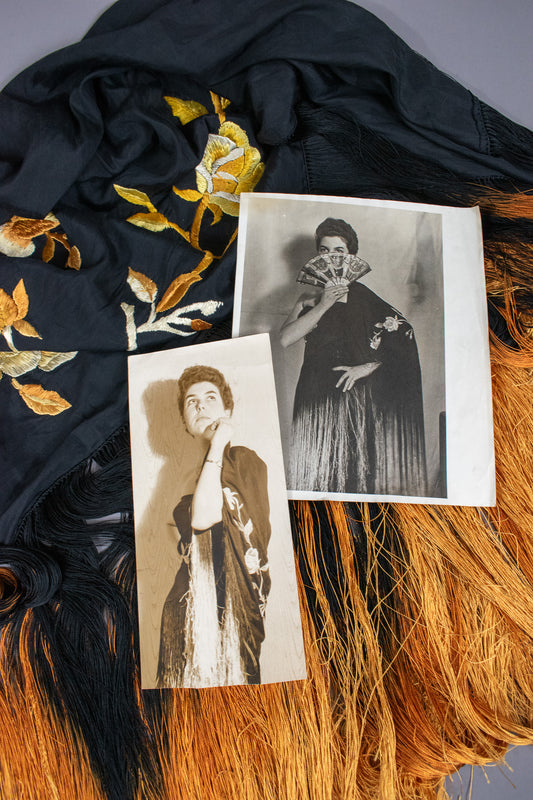 Vintage 1930s Silk Embroidered Piano Manton de Manila Ombre Fringed Shawl with Provenance