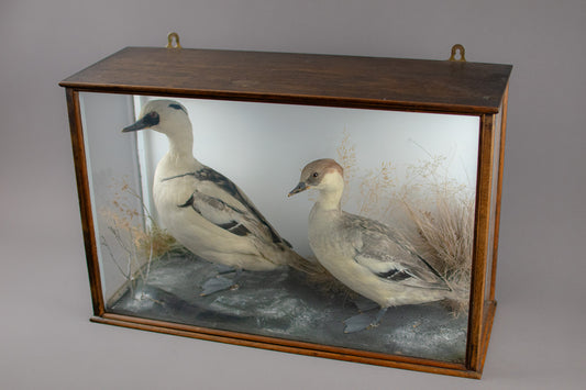 Taxidermy Cased Pair of Smew Ducks (Mergellus albellus) Circa Late 1900s