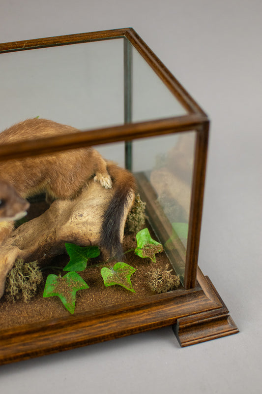 Taxidermy Modern Glass Cased Stoat Amongst Fauna