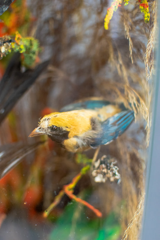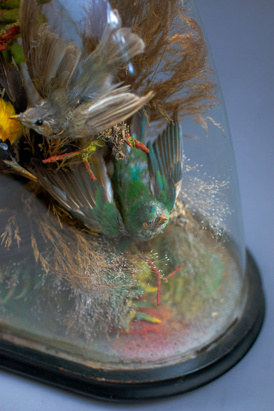 Antique Large Victorian Glass Domed Taxidermy of Ten Exotic Birds