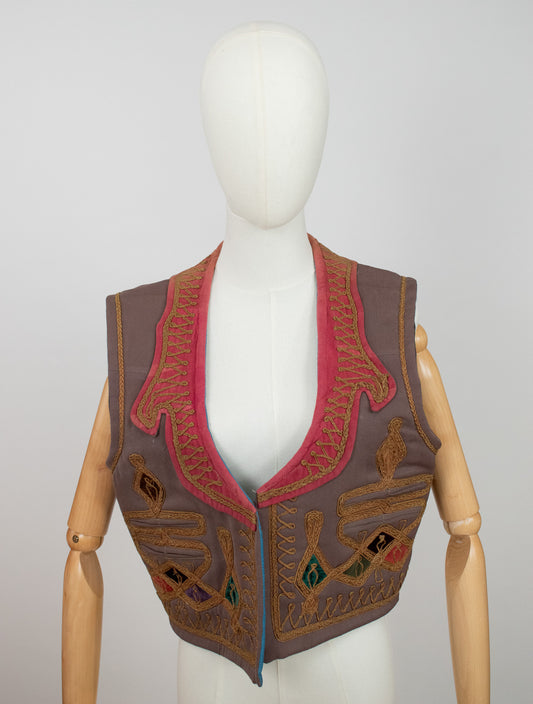 Vintage Afghan Ottoman 1960s Embroidered Vest Waistcoat
