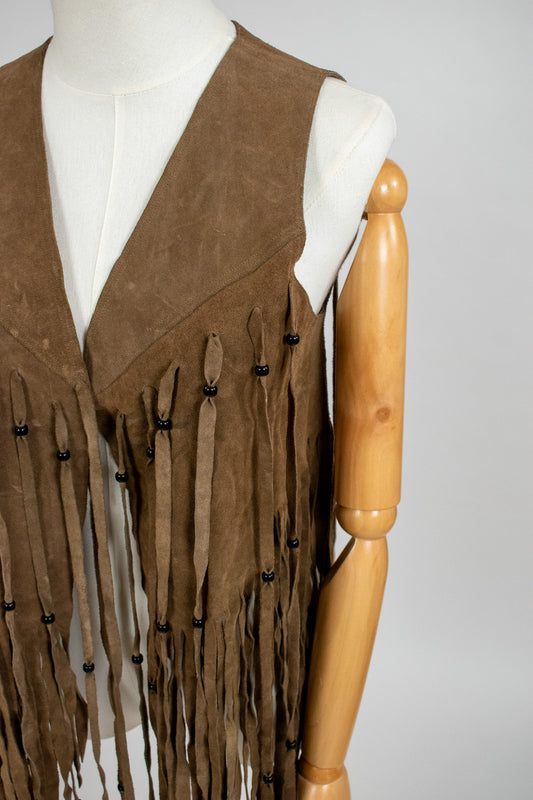 Vintage 1960s Beaded Suede Fringed Waistcoat Vest