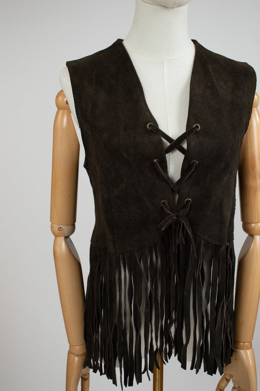 Vintage 1960s Dark Brown Suede Fringed Waistcoat Vest